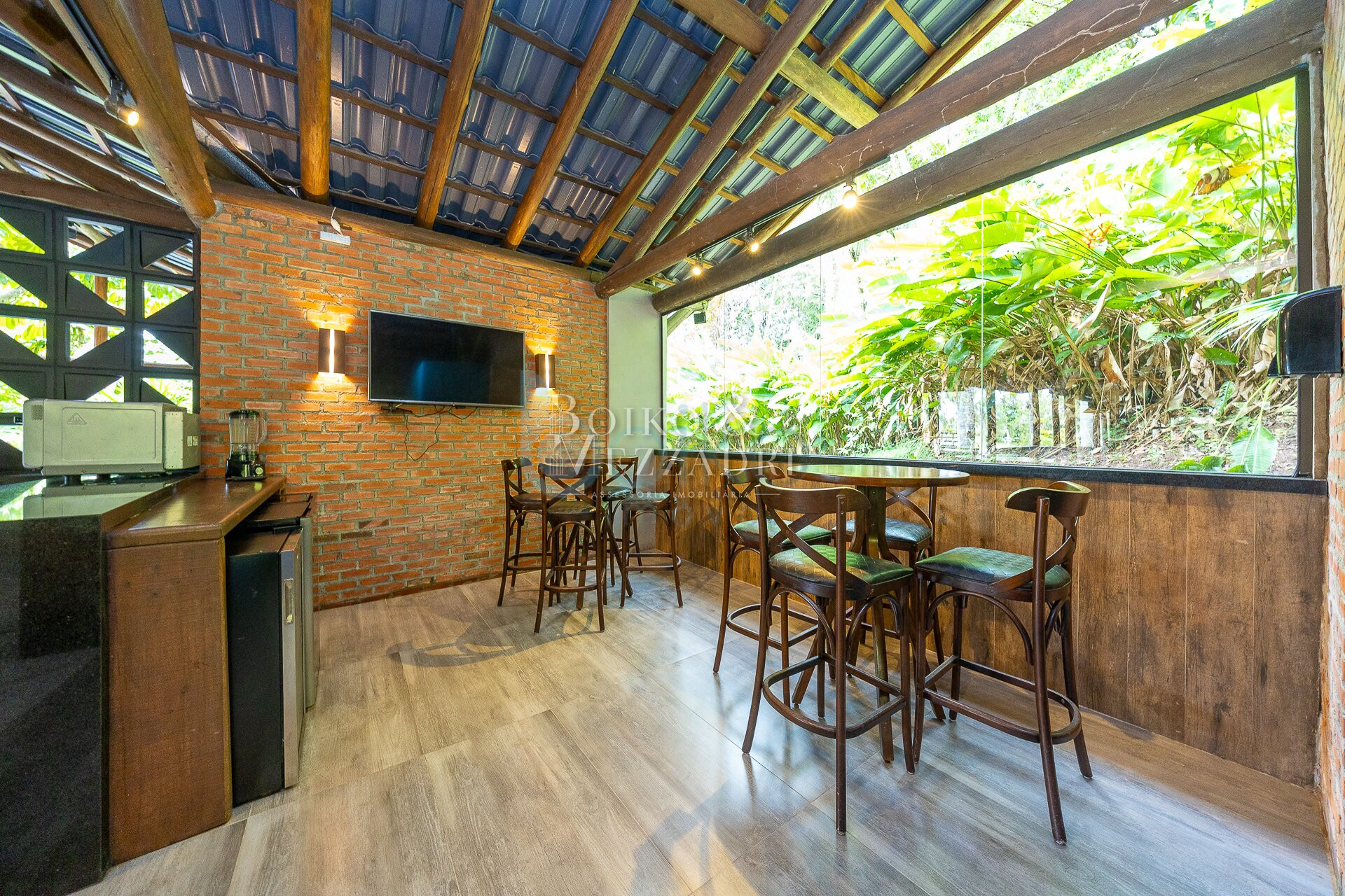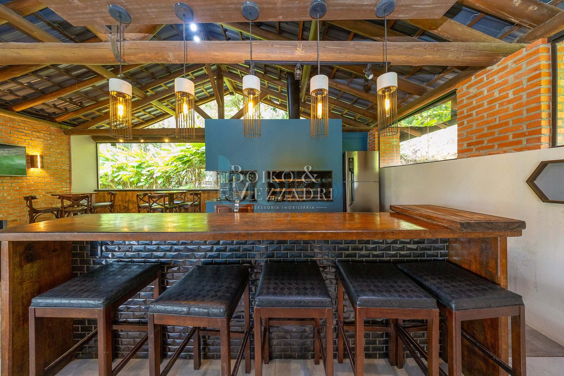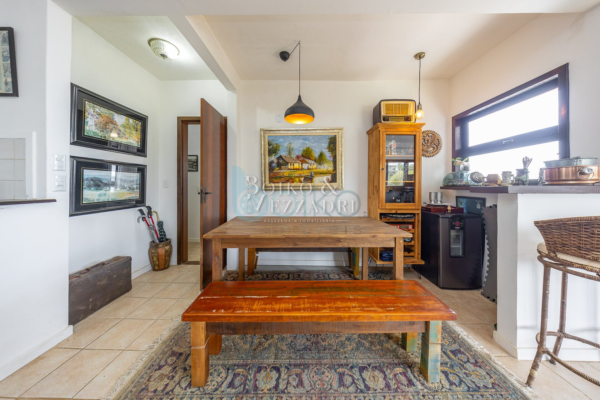 * Área Social: Sala ampla para três ambientes, equipada com lareira para os dias de inverno e integrada a um deck panorâmico que contorna toda a residência.